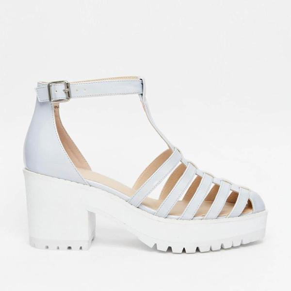 Casual 40mm Platform Block Heel Sandals Vintage Metallic Leather Images |